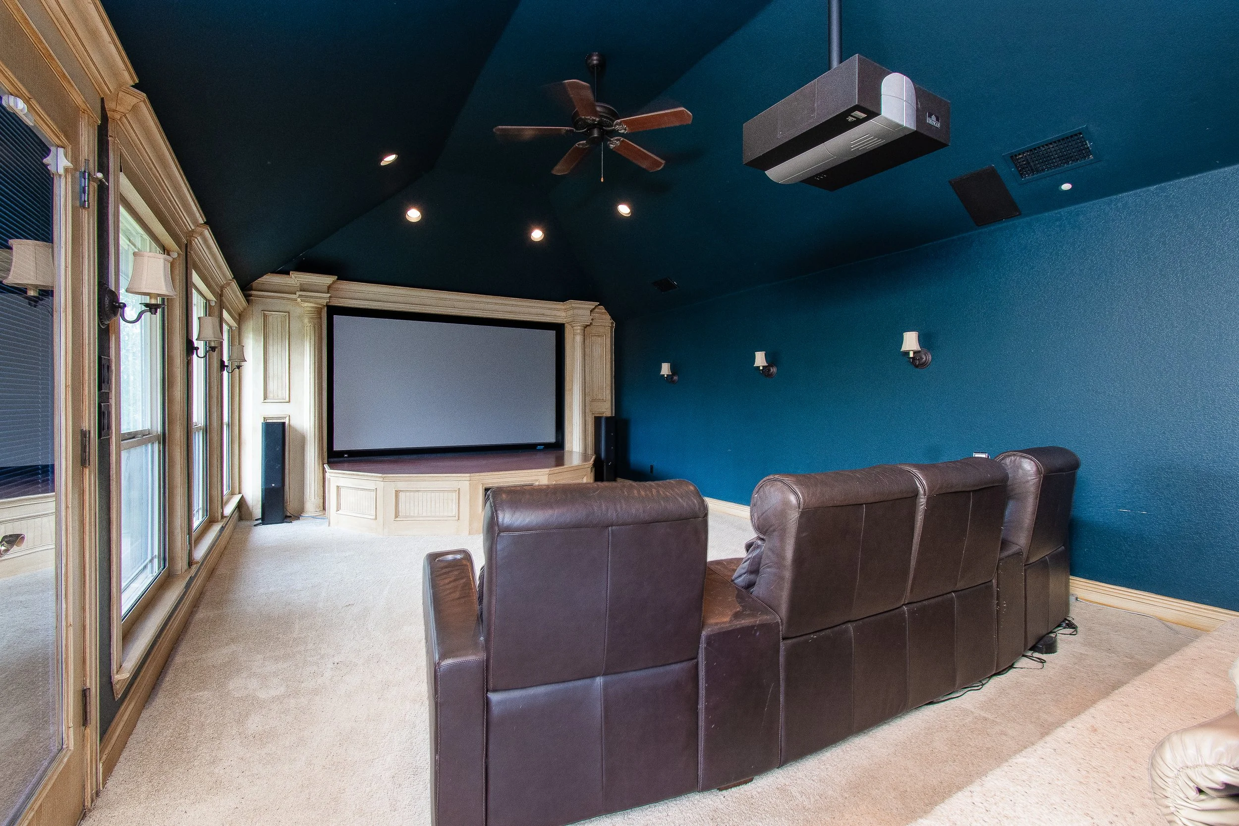 Upstairs, a hidden gem awaits: a sprawling home theater complete with stadium seating, remote-controlled blackout shades, and a convenient kitchenette for snacks and refreshments during movie nights. This entertainment hub is the epitome of luxury, offering an immersive cinematic experience for family and friends to enjoy.